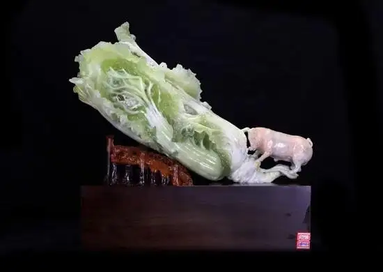 这组玉雕均以岫玉为核心材质,巧用玉料青白俏色雕琢出形态鲜活的白菜,纹理细腻、质感逼真,展现了玉雕师李红伟精湛的俏色巧雕工艺,又融合了中式祥瑞文化与生活意趣,是兼具审美价值与吉祥内涵的玉雕佳作。