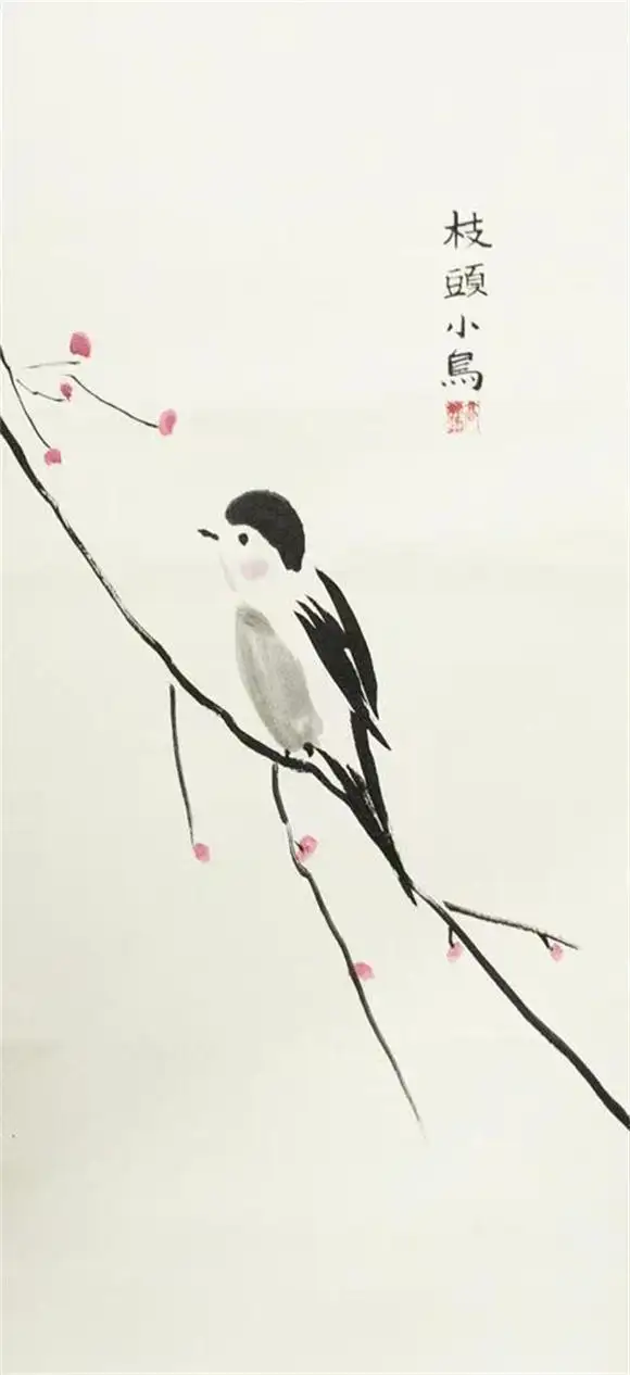 牡丹与小鸟: 她笔下的牡丹富贵而不俗,枝头小鸟动静有致。