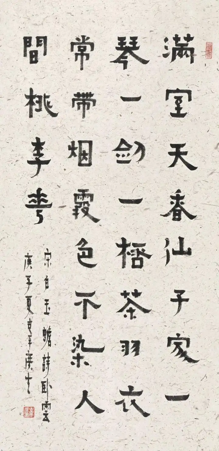 辜广生所创的“辜体”书法,深深植根于碑学传统,尤以“二爨”为基,又融金农漆书的方劲与伊秉绶隶书的宽博于一炉,并汲取汉简的核心养分,且融合了行草书的用笔、楷书的结构,风格上追求古拙、飘逸。