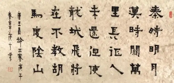 其用笔以中锋为主,方劲沉实,起收果断,线条如铁画银钩,尽显刚健之气;结体则因字立形,外扩舒展,于楷法规矩中暗含篆之对称、草之灵动,字字变化自然。通篇观之,章法疏密有致,墨韵浓淡相生,气脉贯通而意境深远。
