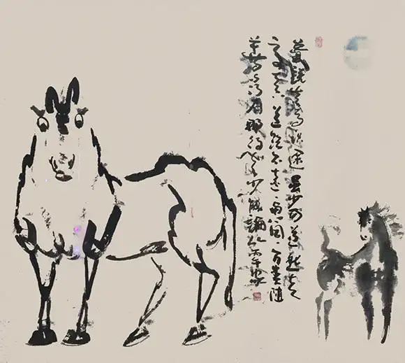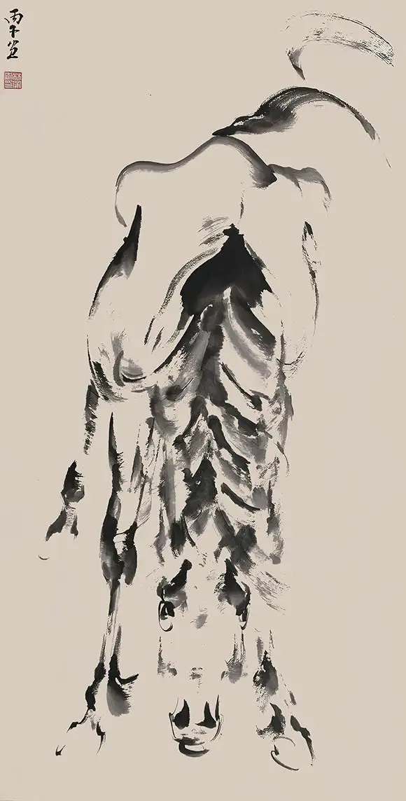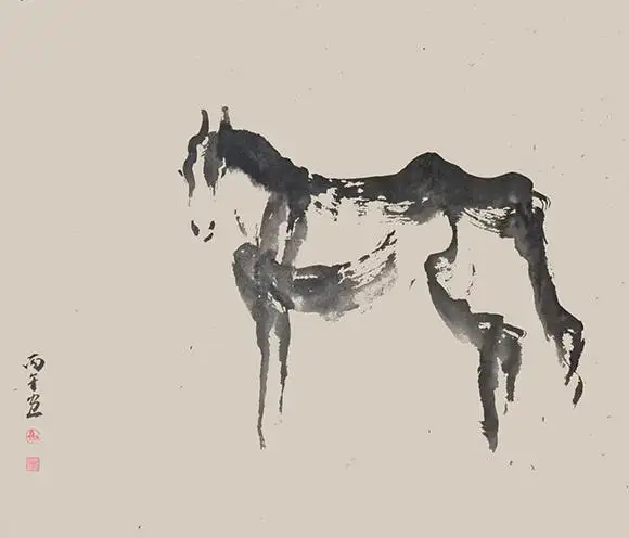 马通人性,颤动的宣纸上,亦见温顺低眉马放南山的松弛,也有走马观花心猿意马的悠然,当家卫透视笔端之马,马亦从二维平面里抬头望他,惺惺相怜,相看两不厌。