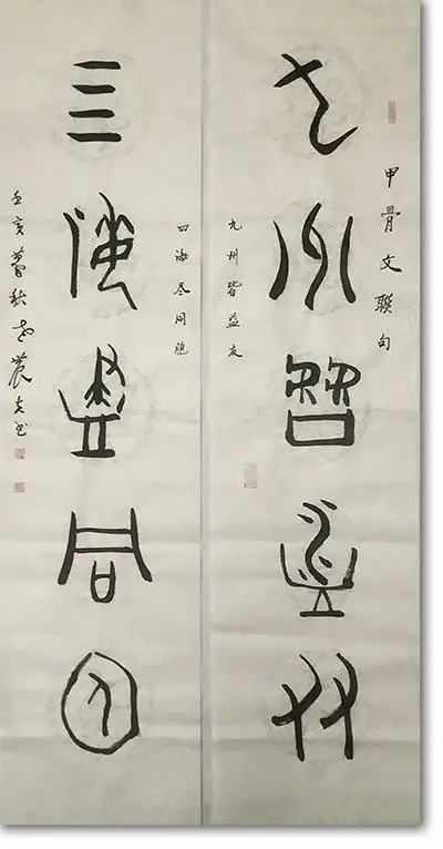 甲骨传古韵 笔墨寄初心—— 赵士群甲骨文书法《九州皆益友 四海皆同胞》赏析
