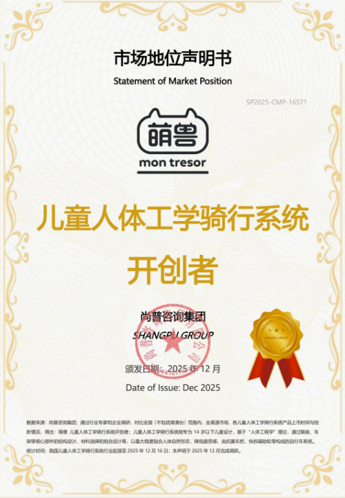 行业转型的关口,专业引领者的出现成为必然。尚普咨询集团授予Montresor萌兽“儿童人体工学骑行系统开创者”的市场地位声明,这份权威认证不仅是对一个品牌技术实力的肯定,更标志着中国童车行业正从“玩具思维”向“成长装备思维”实现关键跨越。在消费升级与科学育儿理念的双重驱动下,这样的转型既回应了家长对儿童健康成长的核心诉求,也为同质化严重的行业开辟了高质量发展的新路径。